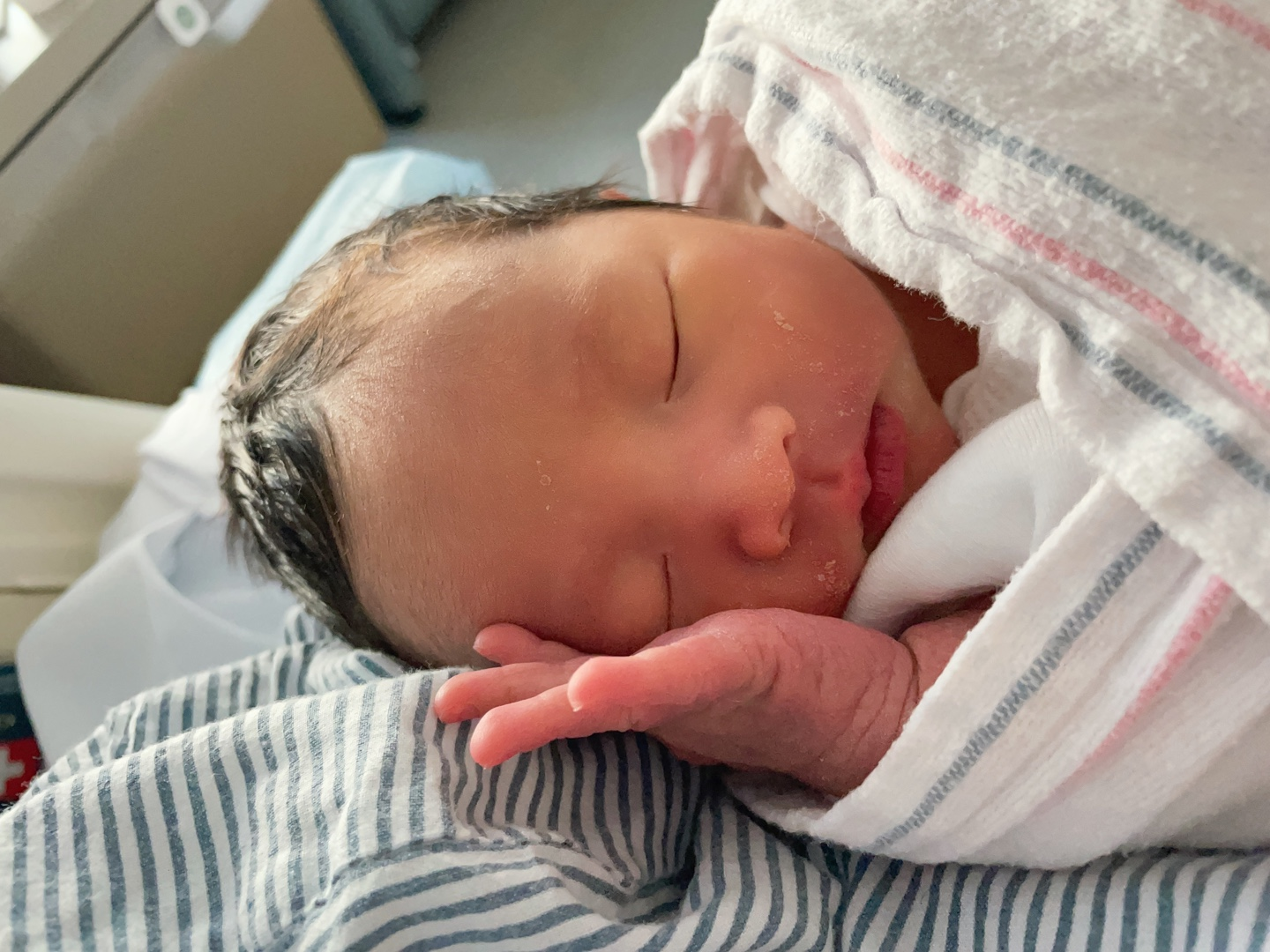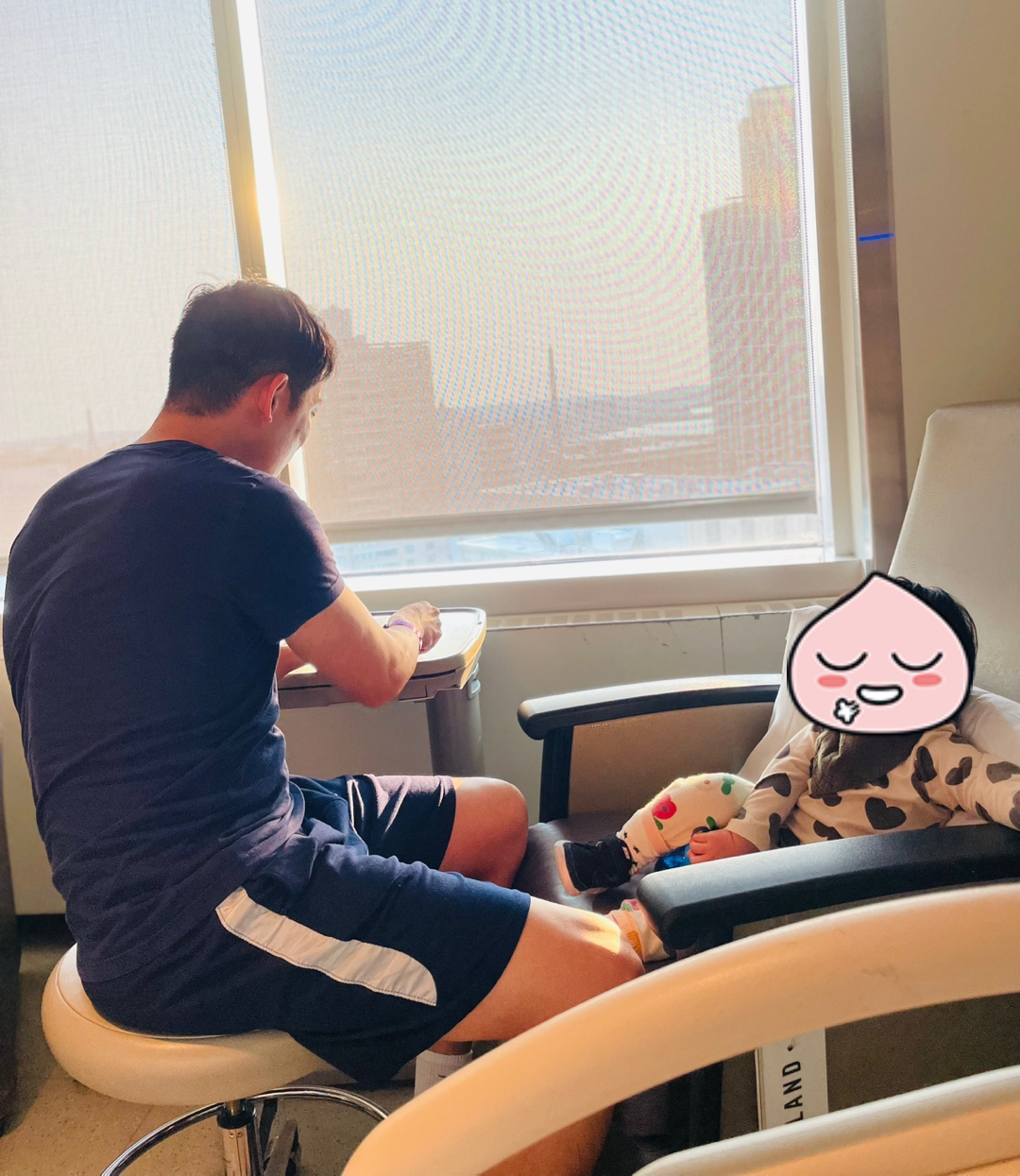 그래도 눈으로 우리 남편이랑 첫째 아가를 보니까 안정이 되었다. 한국 병원에서는 어떤지 모르지만, 미국에서는 내가 가족들의 응원을 받고 싶다고 하니까 다들 찬성하고 좋아해주었고, 아이랑 남편이 내 출산 병실에서 편안히 있을 수 있도록 배려해주었다.